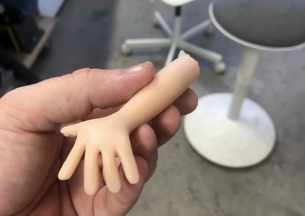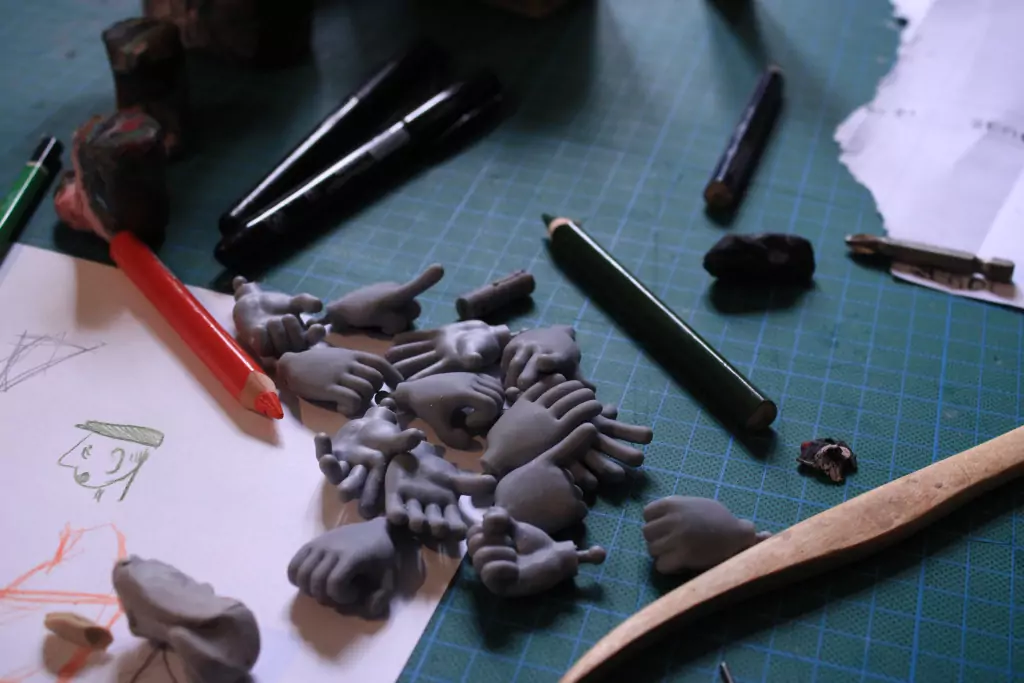 - Mains en silicone : Sculpture, moulage en deux parties, ajout d’une armature métallique et tirage en silicone.